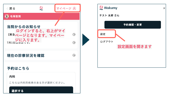 - Wakumyアカウントは、Wakumyを利用する複数の医療機関に共通して利用することができるアカウントです。特定の医療機関のみWakumyアカウントを削除する等はできませんのでご了承ください。